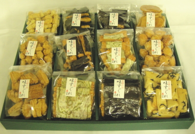 数あるおかきの中から選りすぐりの12品を選び、ご贈答用としてまとました。お礼やちょっとしたお土産に最適です。2200円という金額もリーズナブルな一品です。